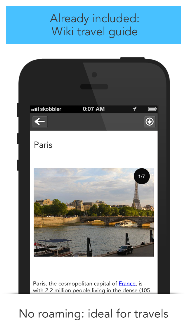 Berlin, Germany, 11th July 2013: skobbler, pioneers in digital mapping solutions and a premier player in mobile location-aware services, has today announced a major update to its recently released Forevermap 2 for iOS. Offering true hybrid online and offline functionality and utilising the wildly popular OpenStreetMap, ForeverMap 2 will now feature an extensive wiki travel guide at no extra cost, allowing users to discover more about their intended destination wherever they are in the world. Just like the rest of the app, the travel guide is available both online and offline, not being restricted by low signal areas or expensive roaming charges when abroad.